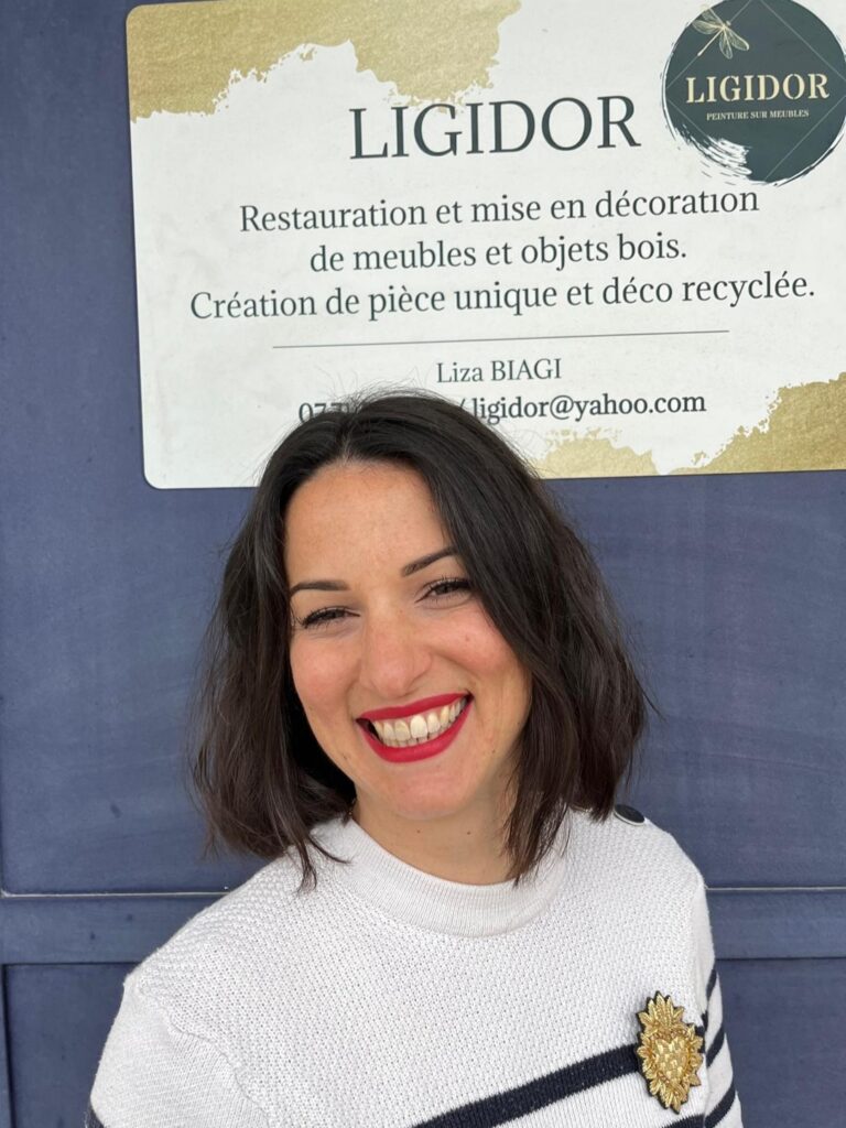 Derrière l’univers de LIGIDOR, il y a moi, Liza Biagi, peintre sur mobilier, artisane d’art passionnée par la beauté du bois et par les histoires que les meubles portent en eux.